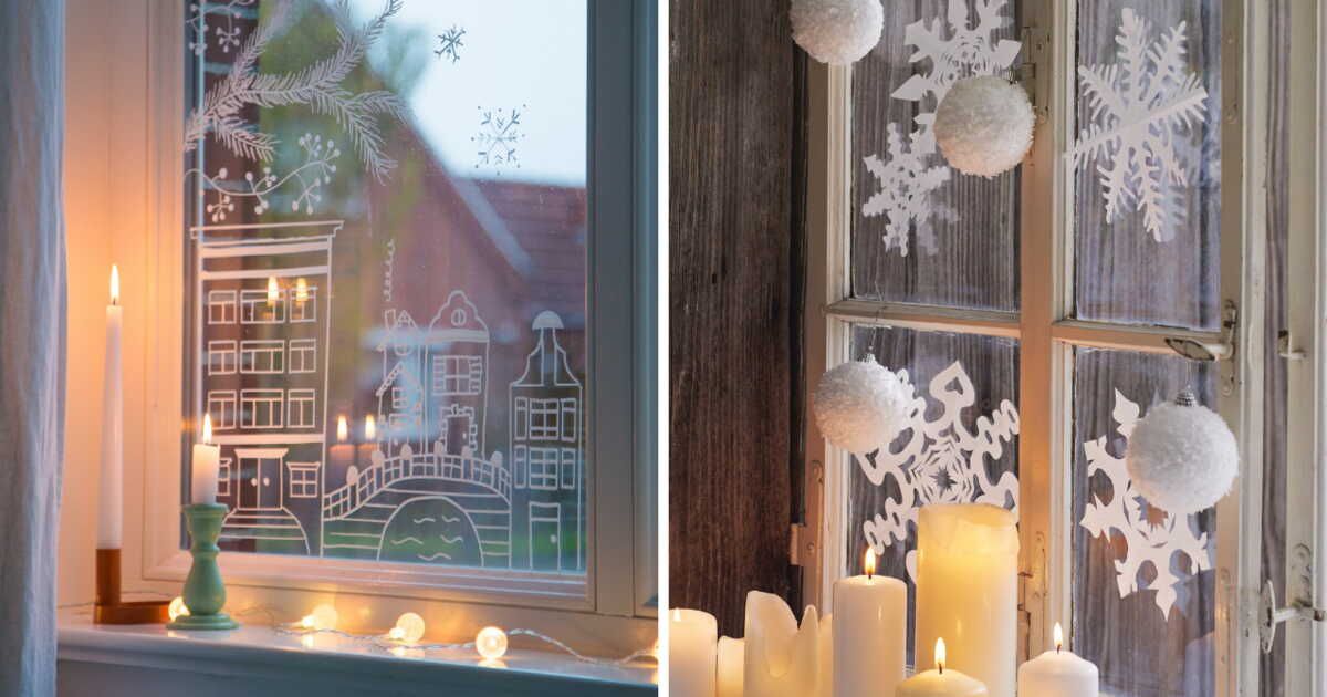 Flocons, sapins et petites maisonnettes : les fenêtres prennent vie avec ces décorations festives. Que ce soit par des dessins au feutre craie, des motifs créés avec des pochoirs, ou des découpages en papier, ces éléments simples apportent magie et enchantement dans votre foyer. Voici quelques idées à réaliser facilement, avec l'aide des enfants :