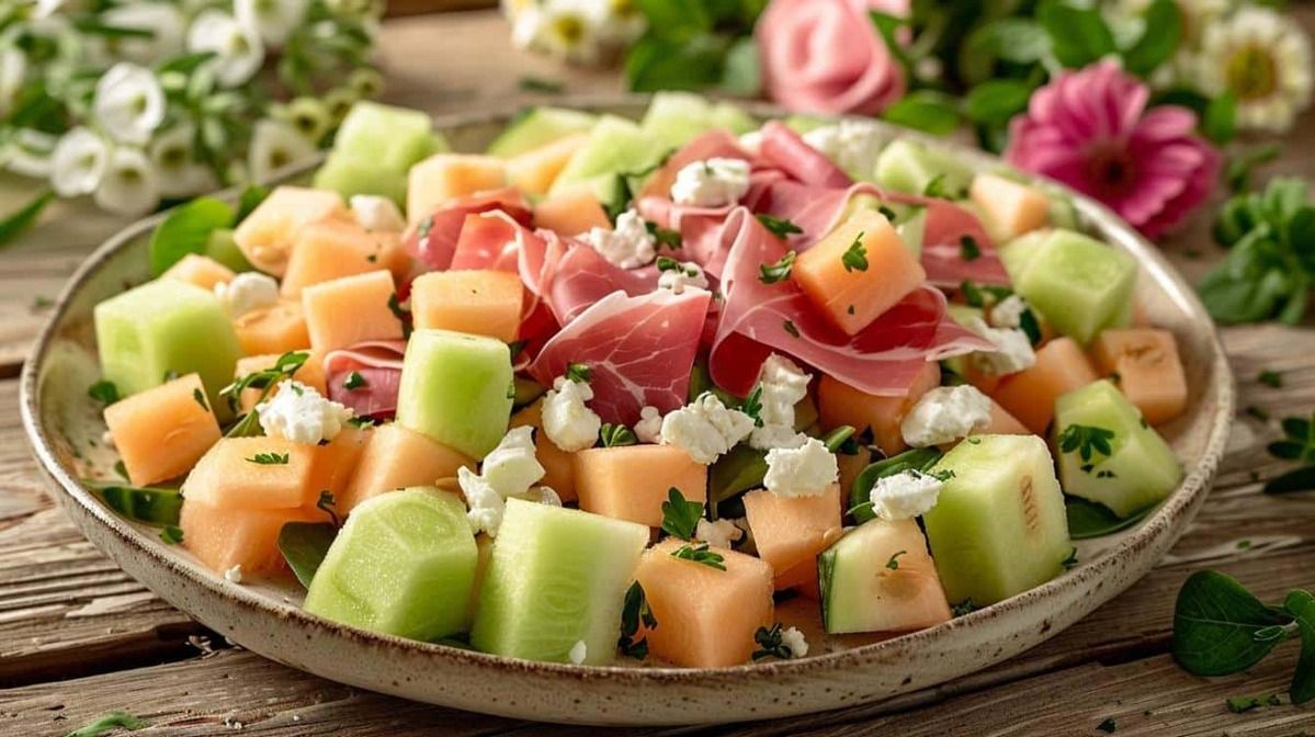 L’été, saison idéale pour se régaler avec des plats légers et créatifs, nous inspire à concocter des recettes savoureuses. Aujourd’hui, plongez dans cette salade de melon, feta et jambon, un mariage parfait de douceur et de fraîcheur qui réjouira vos papilles.