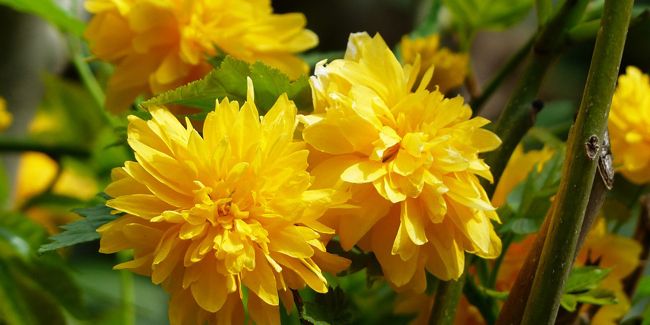 Kerria japonica s'épanouit avec beauté dans une haie libre ou un massif d'arbustes à fleurs, ajoutant de la couleur à votre paysage.
