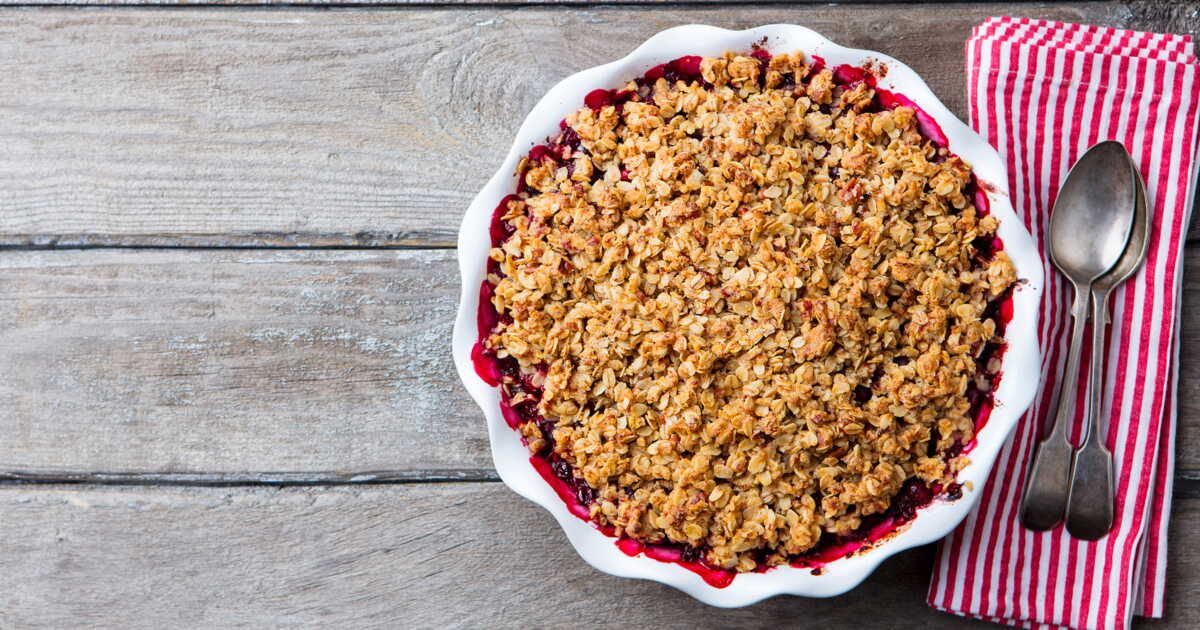 Répartissez la préparation sableuse sur les fraises avant d’enfourner à 180 °C pendant 20 à 25 minutes. Laissez le crumble reposer un peu avant de le servir tiède. Un petit conseil de la créatrice : "Ne jetez pas les queues de fraises, elles peuvent servir à concocter un sirop cru !".