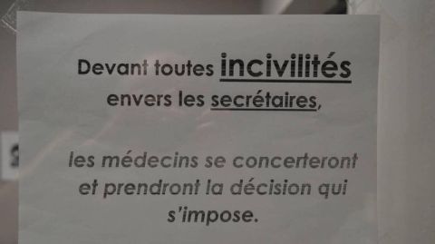 Une affichette placée à l'entrée du cabinet annonce la couleur : Devant toutes incivilités envers les secrétaires, les médecins se concerteront et prendront la décision qui s'impose.