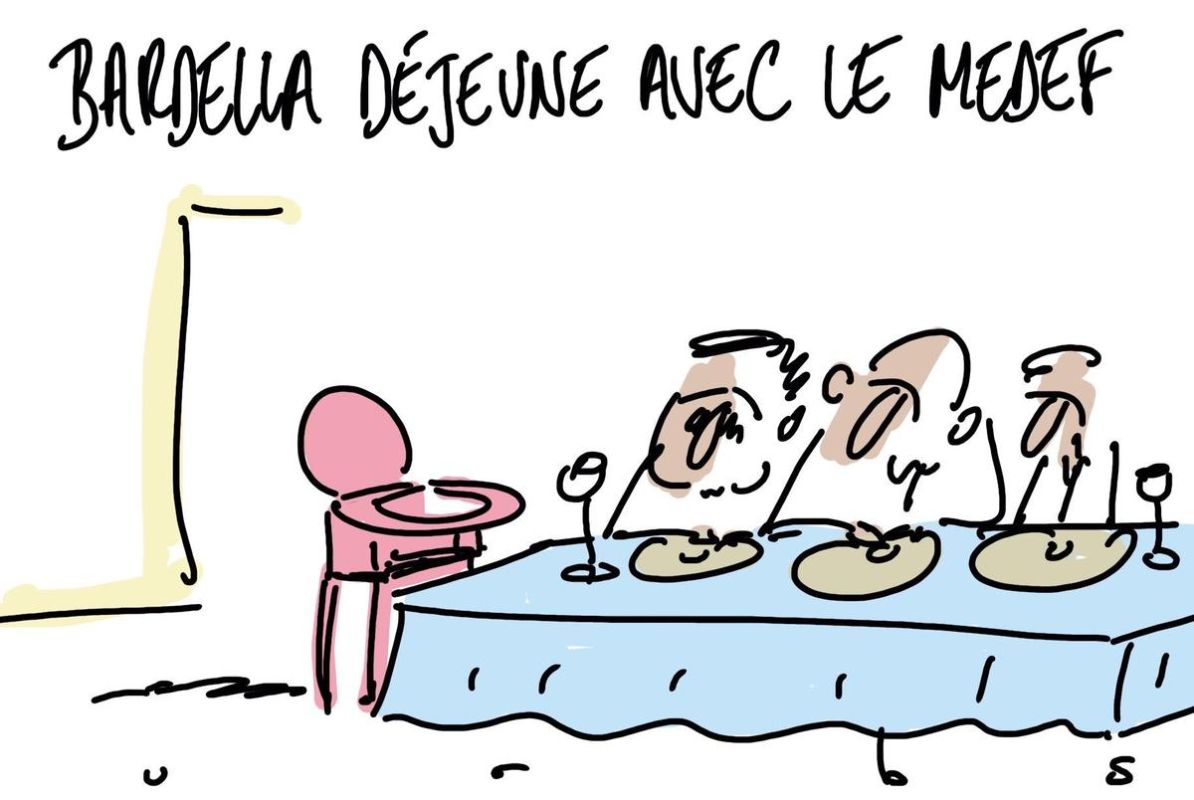 Aujourd'hui, notre dessin de presse met en lumière la rencontre entre le Medef, principal syndicat des entreprises en France, et Jordan Bardella, président du Rassemblement National. Cet échange, bien que marqué par la cordialité, soulève des questions cruciales sur l'économie française.
