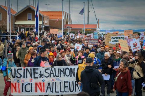 Le dimanche 18 janvier, une mobilisation inattendue a réuni au moins 800 personnes à Port-Médoc, dans le Médoc, contre le projet de ferme aquacole de saumons porté par l'entreprise Pure Salmon France. Alors que l'enquête publique sur ce projet crucial se terminait le jour suivant, les manifestants souhaitaient se faire entendre et insister sur leurs craintes concernant les conséquences environnementales et socio-économiques de cette implantation.