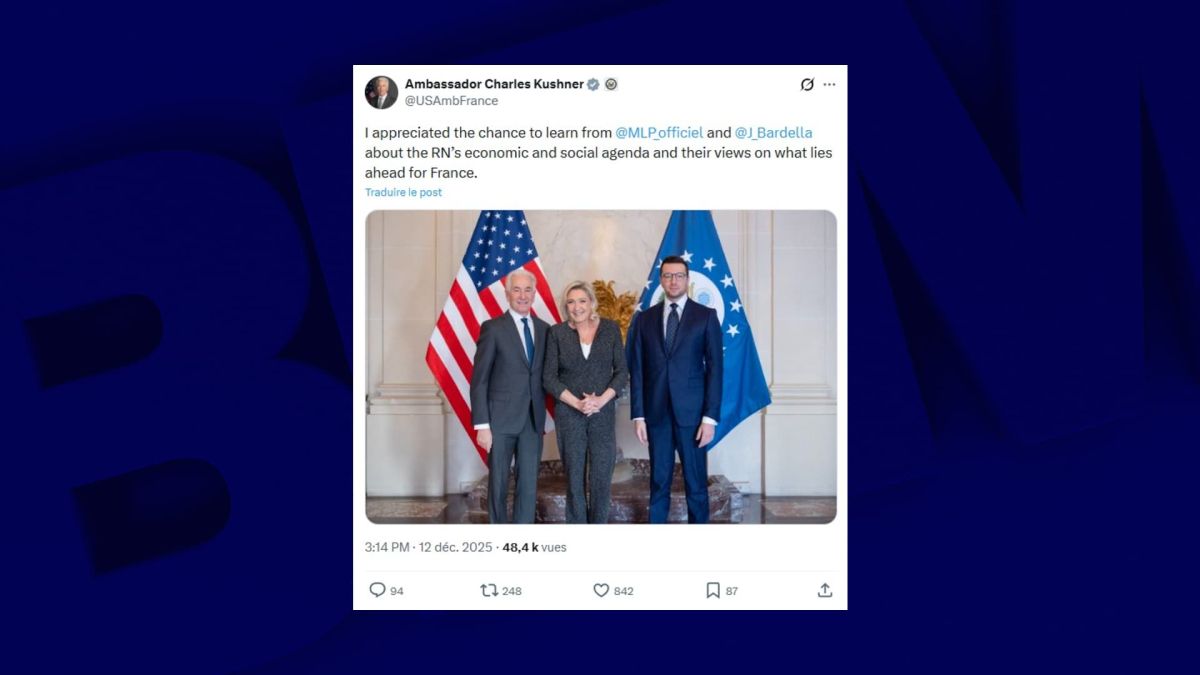 Ce vendredi 12 décembre, Jordan Bardella, le président du Rassemblement national (RN), et Marine Le Pen, cheffe de file des députés du parti, ont rencontré Charles Kushner, l'ambassadeur des États-Unis en France. Cette réunion a permis d'aborder plusieurs aspects du programme économique et social du RN dans un contexte européen complexe.