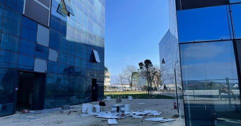 Les imposants bâtiments sont en piteux état, abandonnés depuis la faillite de la société d'assurance. La liquidation de l'entreprise et la condamnation du PDG pour pratiques commerciales trompeuses ont laissé les lieux à leur triste sort. En entrant, il faut naviguer prudemment, entre câbles, débris de verre et mobilier oublié. Dans la cafeteria, des excréments d'animaux témoignent d'une occupation inattendue : il y a à peine deux semaines, des chevaux et dromadaires avaient élu domicile ici.